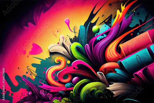 Wild dynamic colorful graffiti wallpaper background (Generative AI)