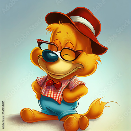 Happy cute dog puppy with glasses and hat as character (Generative AI)