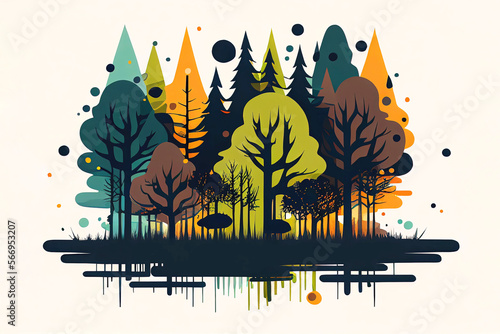 Modern abstract forest and trees in flat design illustration (Generative AI)