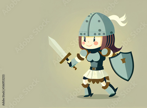 Cartoon girl fighting as knight in armor with sword (Generative AI)