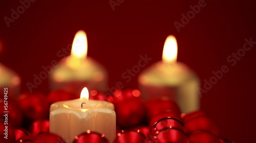 Abstract christmas background with fairy lights and magical floating christmas ornaments