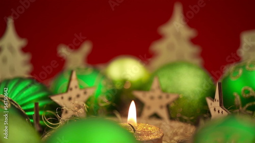 Panning over christmas wreath with candle