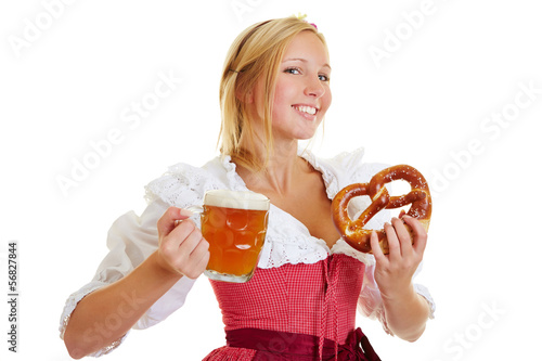 Mann und Frau mit Bier und Brezel zum Oktoberfest