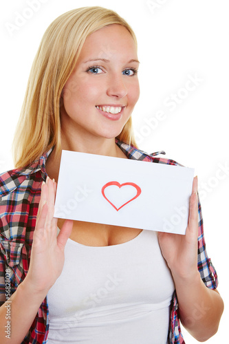 Mädchen mit geschlossenen Augen hält Liebesbrief