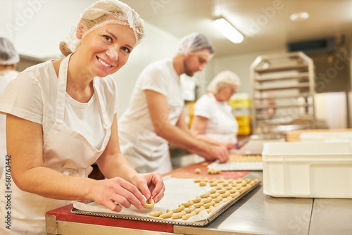 Frau als Bäcker Lehrling beim Backen von Vanillekipferl