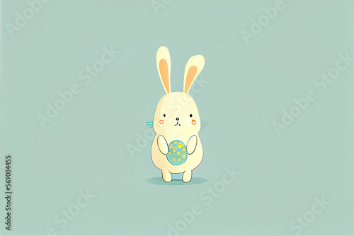 Cute cartoon easter rabbit holding an easter egg as easter greeting card design illustration (Generative AI)