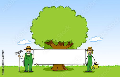 Frau als Gartenhelfer neben Baum bei Baumpflege