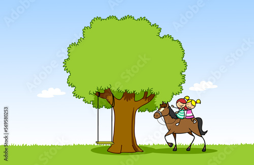 Gruppe Cartoon Kinder hängt an Trennlinie als Designelement