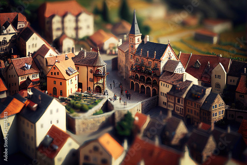 Diorama with miniature model of a medieval small European town (Generative AI)