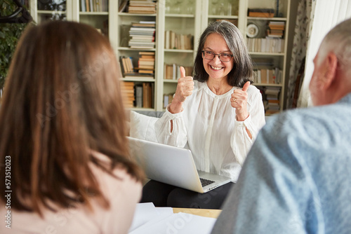 Senioren und Steuerberaterin sprechen über Vertrag