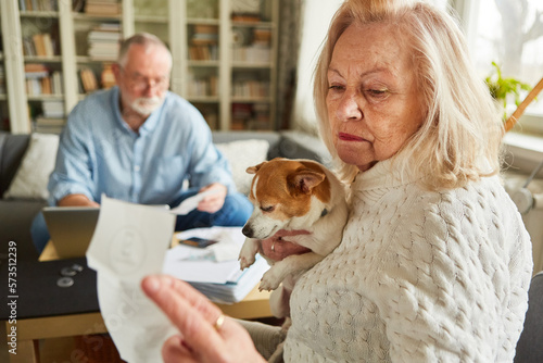 Senior woman worried looking at receipt with high expenses
