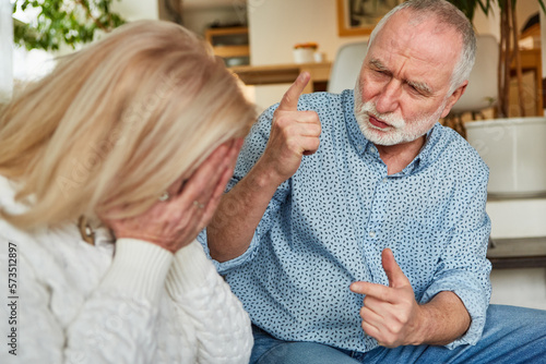 Älterer Mann schimpft mit seiner weinenden Ehefrau