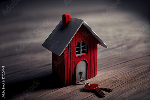 Illustration of a key board and house key sitting on top of a wooden table (Generative AI)