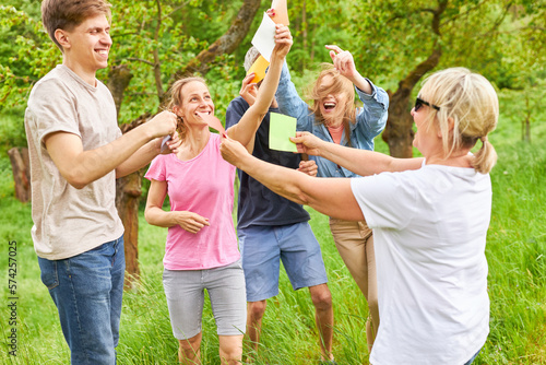 Gruppe hat Spaß beim kreativen Spiel zum Kennenlernen