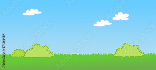 Cartoon background with meadow and sky and clouds