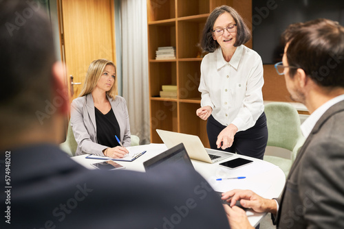Ältere Geschäftsfrau als Referentin in einem Team Meeting