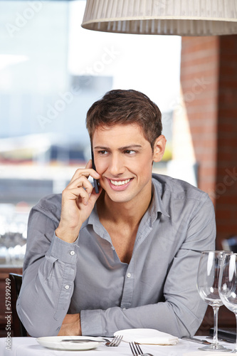 Mann telefoniert im Restaurant
