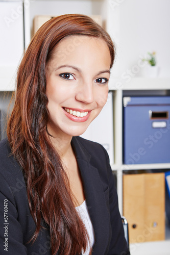 Zufriedene Geschäftsfrau lehnt an Mauer
