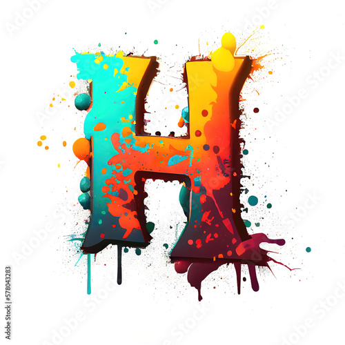 Letter H of colorful graffiti alphabet font (Generative AI)
