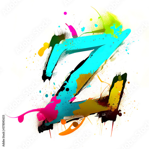 Letter Z of colorful graffiti alphabet font (Generative AI)