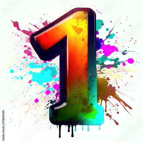 Number 1 of colorful graffiti alphabet font (Generative AI)