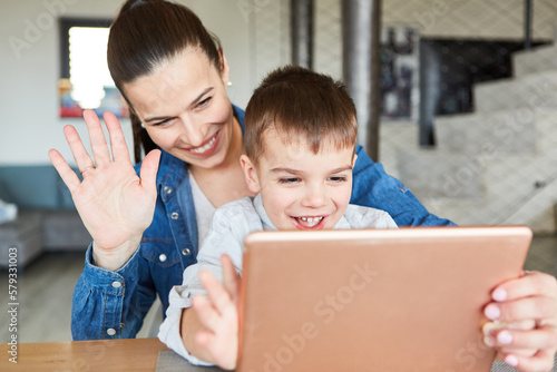 Gestresste Mutter betreut ihr Baby und telefoniert