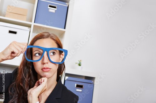 Nachdenkliche Frau im Büro mit Brille
