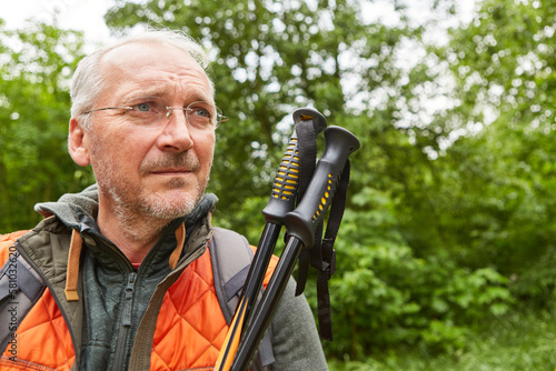 Aktiver Senior mit Fernglas beim Vögel beobachten