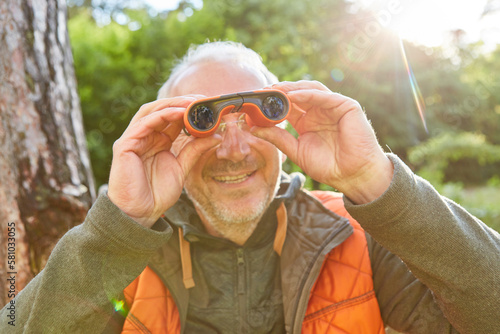 Hand mit Lupe sucht in Portraits als Umfrage und Marktforschung Konzept