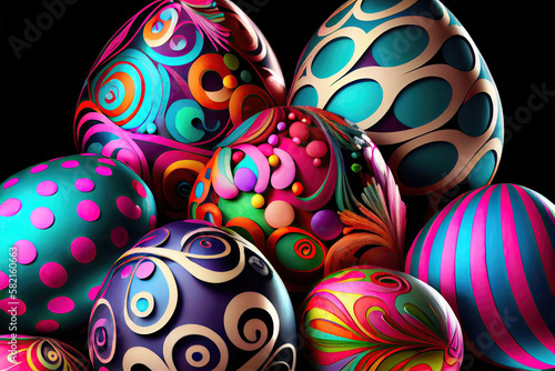 Close-up of colorful abstract easter eggs as easter background illustration (Generative AI)