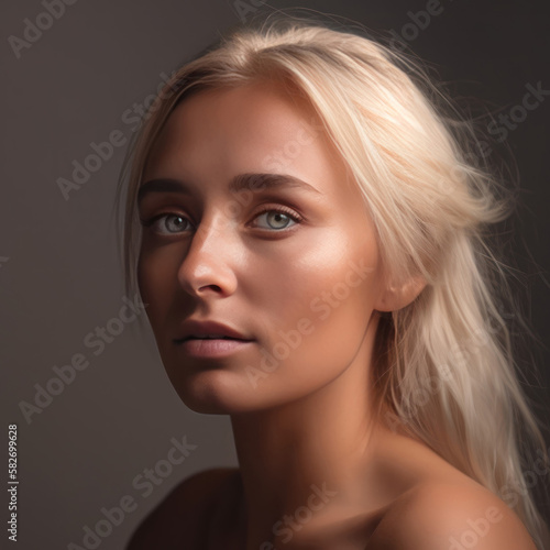 Beautiful blonde caucasian woman as studio portrait (Generative AI)