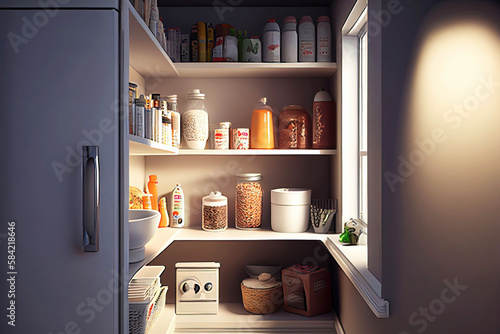Interior of modern kitchen pantry as digital interior design illustration (Generative AI)