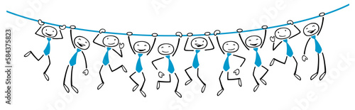 Gruppe von Cartoon Geschäftsleuten hängt an Linie