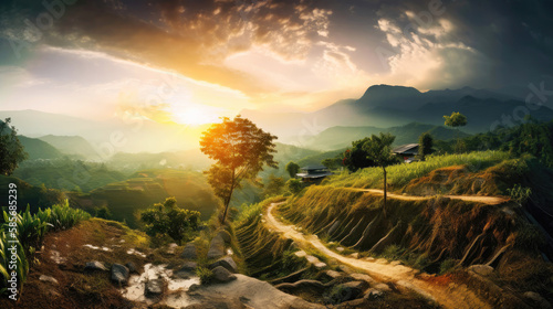 Amazing thailand landscape in the evening with sunset (Generative AI)
