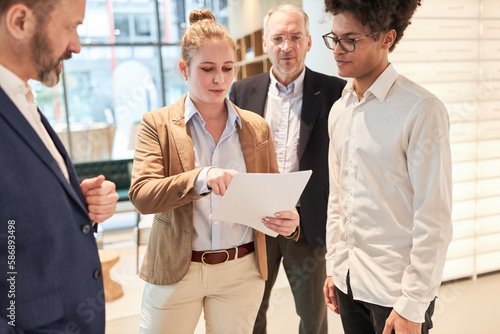 Start-up team with business plan during project planning