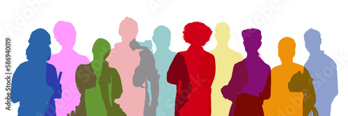 Bunte Silhouetten vieler Erwachsener in verschiedenen Posen