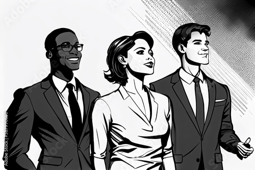 Panorama aus Silhouetten von Geschäftsleuten vor bunten Business Portraits