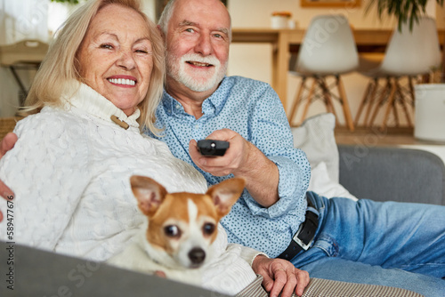 Glückliches älteres Paar zusammen mit ihrer Katze