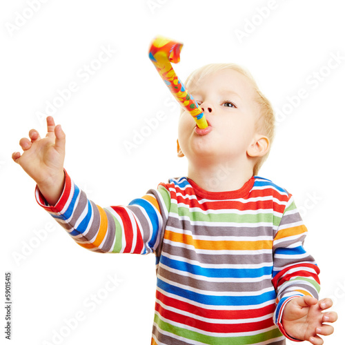 Kind bläst in Luftrüssel bei Logopädie