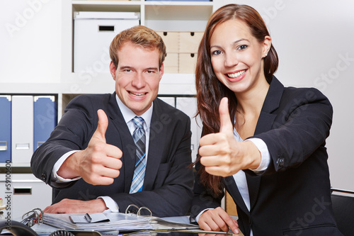 Geschäftsleute halten Daumen hoch im Business Meeting