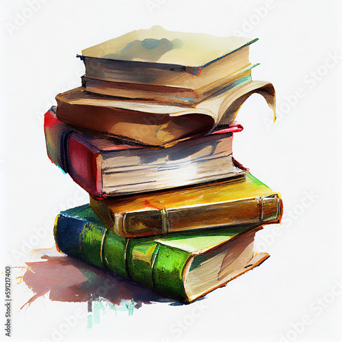 Stack of old vintage textbooks and books in watercolor (Generative AI)