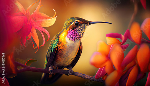 Colorful painting of beautiful humming-bird in nature (Generative AI)
