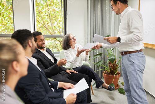 Referent oder Ausbilder in einem Seminar mit Fragebogen