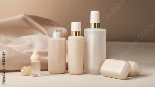 Blank beauty and skincare product containers as mockup template digital illustration (Generative AI) #592183439
