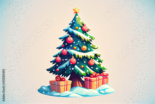 Modern christmas tree with gifts in snow as simple flat illustration (Generative AI)