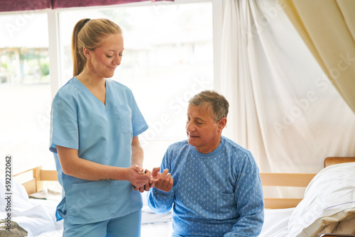 Nurse checking blood sugar of diabetic patient