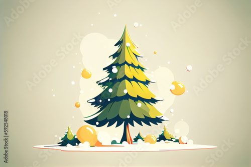 Christmas tree in nature in simple flat illustration design (Generative AI)