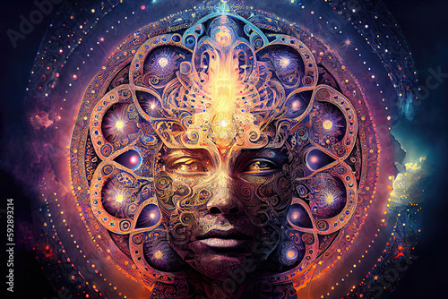 Spiritual enlightment as psychedelic meditation concept (Generative AI)