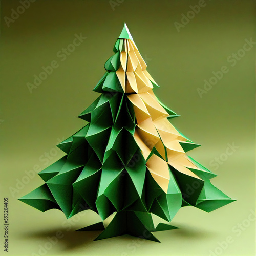 Abstract christmas tree as folded papercut papercraft (Generative AI)