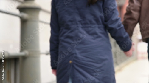 Couple holding hands in city
